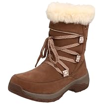 Toast your toes in these rustic Ulu Suluk boots. Waterproof event (R) leather upper in a casual mid rise boot style with a round toe. Embroidered floral accents and patterned webbing lacing loops create a fresh modern finish. Lace-up 8 inch shaft 12 inch circumference shearling-trimmed collar. Shearling lining and cushioning insole flexible cork infused rubber midsole. Rubber traction outsole. 1 1/2 inch wedge heel.[]
