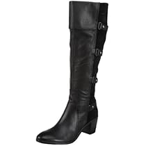 - Leather and suede upper in a knee-high dress boot style with round toe